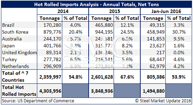 On Friday the U.S. Department of Commerce announced their final determination findings on hot rolled steel dumping margins and countervailing subsidy rates for Brazil, South Korea, Australia, Turkey, Japan, United Kingdom and the Netherlands. In the article above SMU reproduced the press release provided by the Commerce Department. In this article SMU are going to compare the preliminary determinations with the final and see if there are any surprises that could impact U.S. customers.