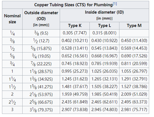 Common wall-thicknesses of copper tube in the U.S. , Canada and India are "Type K", "Type L", "Type M", and "Type DWV"